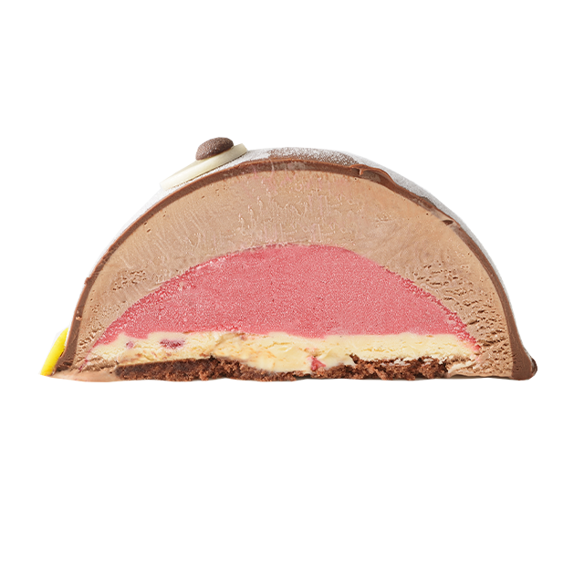 濃厚なチョコレートアイスとフランボワーズシャーベットに、フランボワーズ入りのバニラアイスクリームを重ね合わせました。